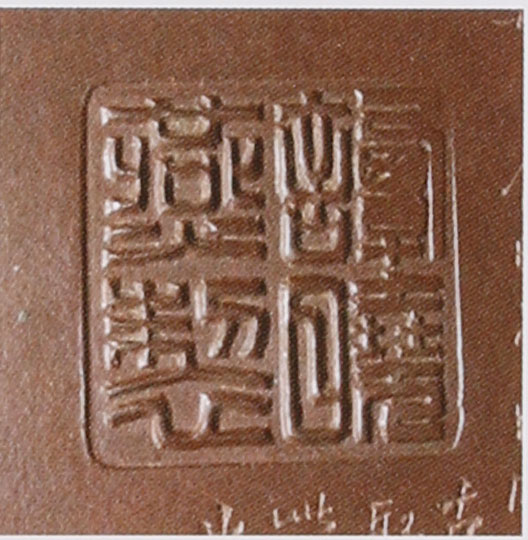多件作品壺身由其父銘刻,除曼生三刀法外,還運用多種刀法,鐫刻長詩、古人物,山水、花鳥等,風格多樣,底部刻有『陶逸軒』印款。